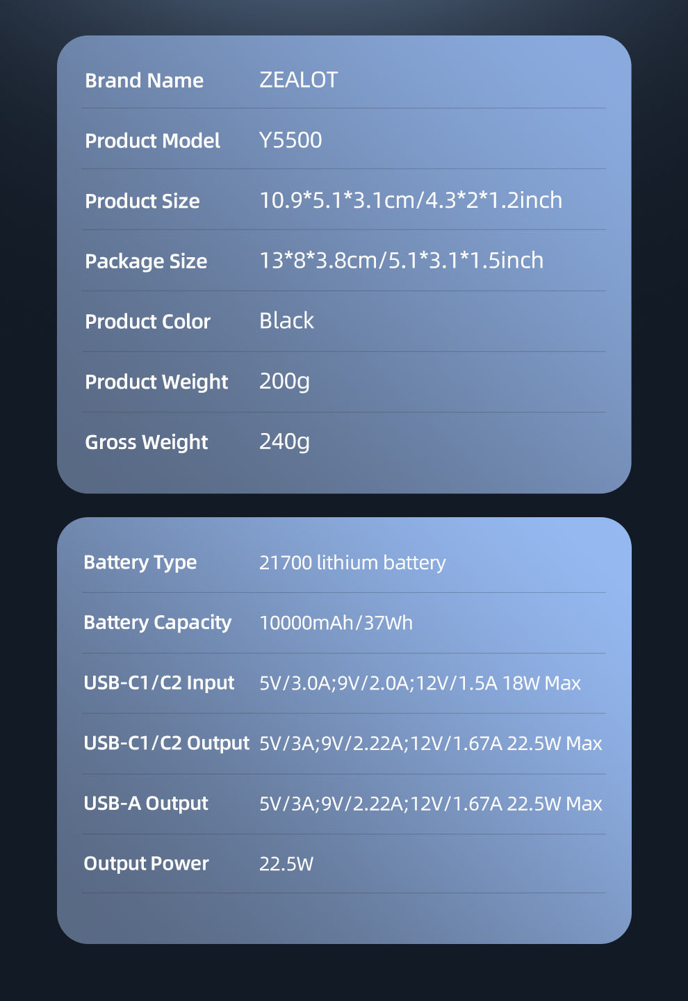 ZEALOT Y5500 power bank